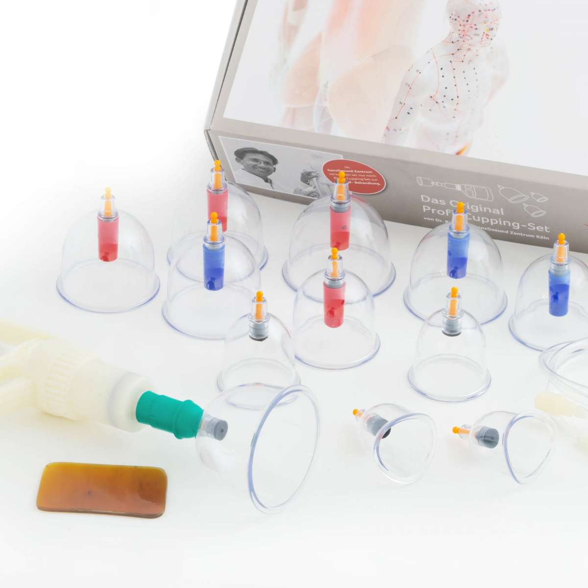 Cupping is a negative pressure massage of the connective tissue. This also loosens stuck fascia. When our fascia sticks together, it often leads to pain in the back, arms, and legs. Suction cup treatment has been effective against pain for thousands of years. In the past, glass suction cups were often used. Unfortunately, these break quickly.